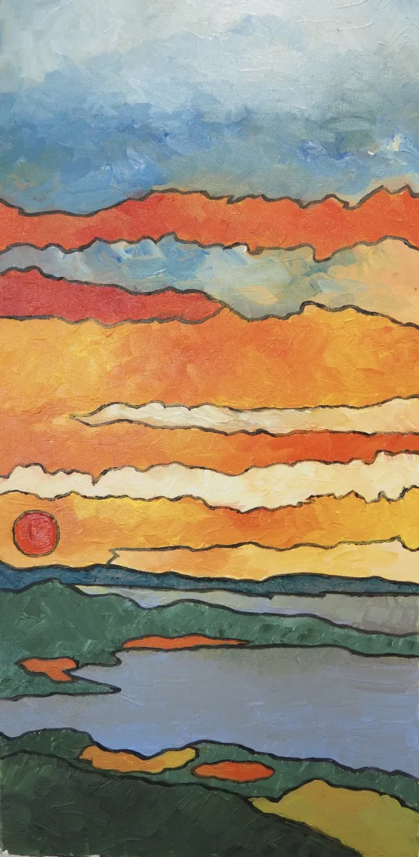Sunrise over Hobart. Oil on canvas 30 x 15 in