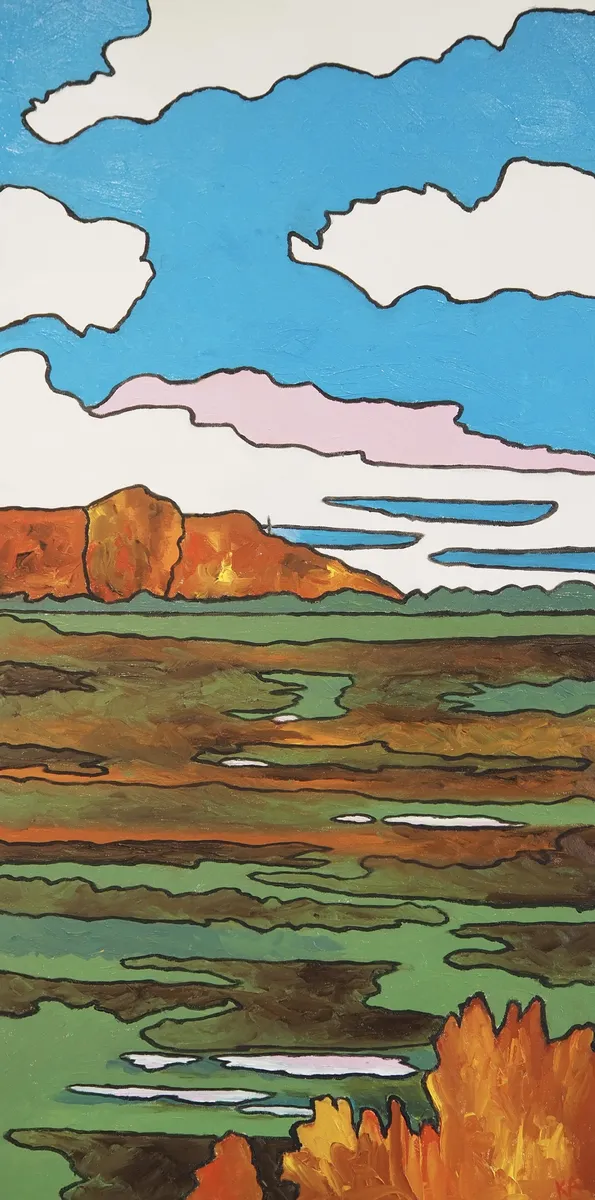 The Wimmera from Mt Arapiles summit. Oil on canvas 36 x 18 in